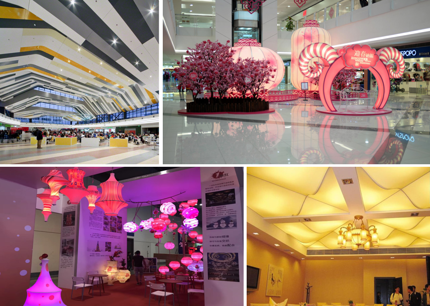 软膜天花是一种拥有高透光性,防火防水,安全环保,且光源扩散性佳的优秀材料,可广泛应用于宣传,展示,美陈,舞美,灯彩等方面。